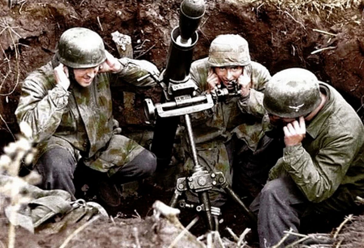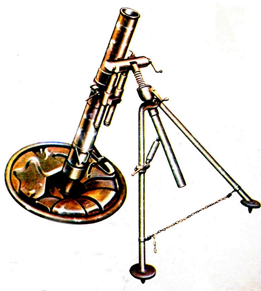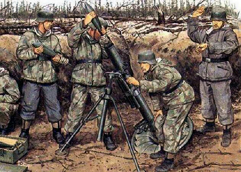 二战期间,德军使用的迫击炮主要有50mm口径的GrW36型和80mm口径的GrW34型(含基于GrW34型上改短、主要供伞兵使用的80mm口径kz 8cm GrW42型),以及仿制苏联PM38型的120mm口径GrW42型。其中GrW36型因火力太弱,射程太短,后逐步被80mm口径的GrW42型替代。二战期间,因为德军有大量反坦克炮,以及数量较多的作地面火力支援的轻步兵炮与小口径高射炮,因此没有专门去研发大口径的重型迫击炮,对迫击炮的研发与运用是不够重视的。