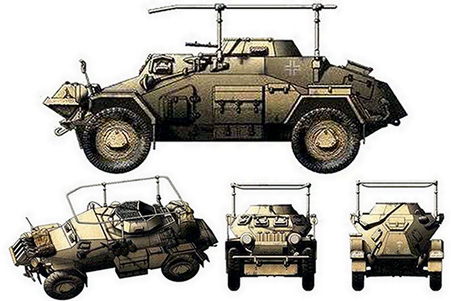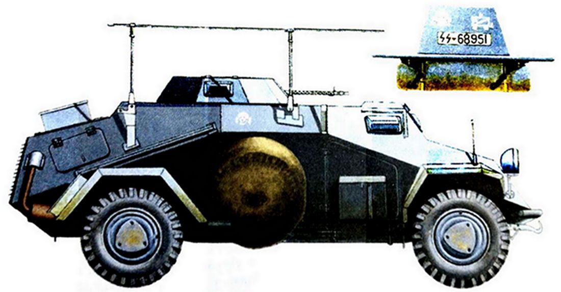 Sdkfz 223型4轮装甲通讯车从1938年开始装备德军侦察部队,替代已经落后的Sdkfz 14装甲通讯车,1935年至1944年间,共生产了550辆。