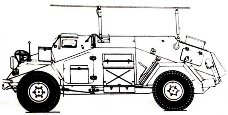 二战前,德军已深知战场上通讯的重要性,因此在一战后即开始了战场通讯车的研制,由于“凡尔赛条约”的限制,德军开始只能用轮式装甲车改装为通讯装甲车,而4轮装甲通讯车就是德军在二战前最早改装的战场通讯车。被改装为通讯车的4轮装甲通讯车有多种型号,最早有Sdkfz 14,陆续有P204、Sdkfz 223、Sdkfz 260和Sdkfz 261等,这些车都装备有功率较大的无线电台和框形或杆形天线,除担负战场侦察与通讯任务外,也担负部队与空军飞机的通讯联络任务。