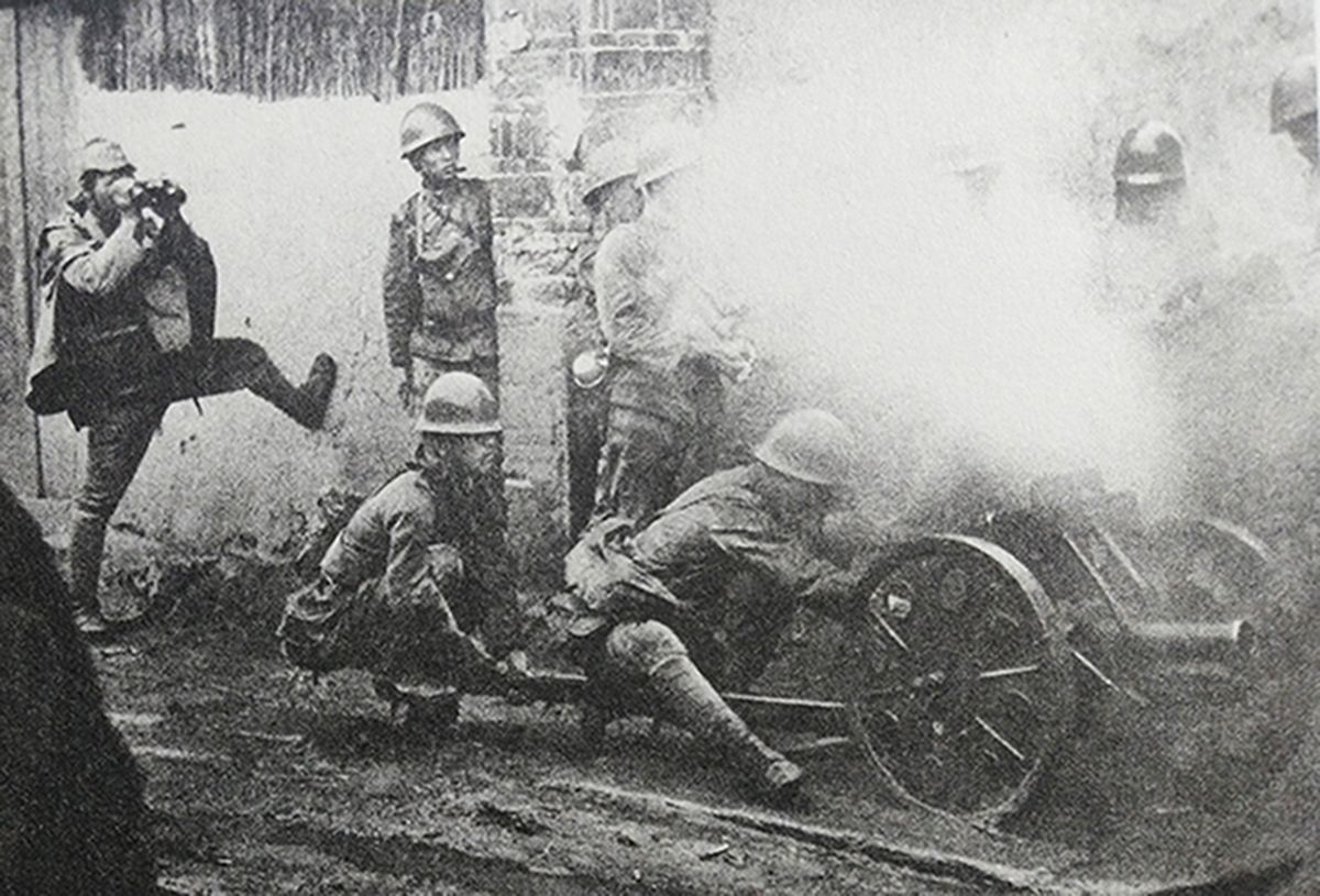 92式70毫米步兵炮(山炮)是日军在中国抗日战场和太平洋战场上广泛使用的小口径火炮,该炮体积小、重量轻、容易隐藏、可快速转移,既可布置在反斜面进行曲射作为火力支援和杀伤人员用,也可在城市巷战中对火力点进行直射。二战时期,在日军每个大队都有一个由55人组成的92式70毫米步兵炮小队,队中配备2~4门92式70毫米步兵炮和一个弹药班,是日军前线步兵的重要火力支援武器。